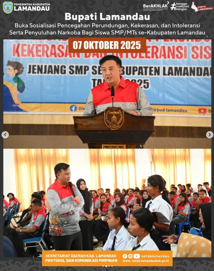 “Pemerintah Kabupaten Lamandau berkomitmen kuat untuk mencegah dan menangani kasus perundungan, kekerasan, serta intoleransi di satuan pendidikan. Untuk itu, telah dibentuk Satuan Tugas Pencegahan dan Penanganan Kekerasan (Satgas PPK),” ungkap Bupati.