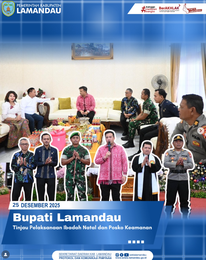 Nanga Bulik – Kamis (25/12) Dalam rangka memastikan keamanan dan kelancaran pelaksanaan Ibadah Natal, Bupati Rizky Aditya Putra melaksanakan monitoring langsung di sejumlah gereja dan posko pengamanan pada perayaan Natal di wilayah Kabupaten Lamandau. Turut hadir Forkopimda, Sekretaris Daerah, dan Undangan Lainnya.
