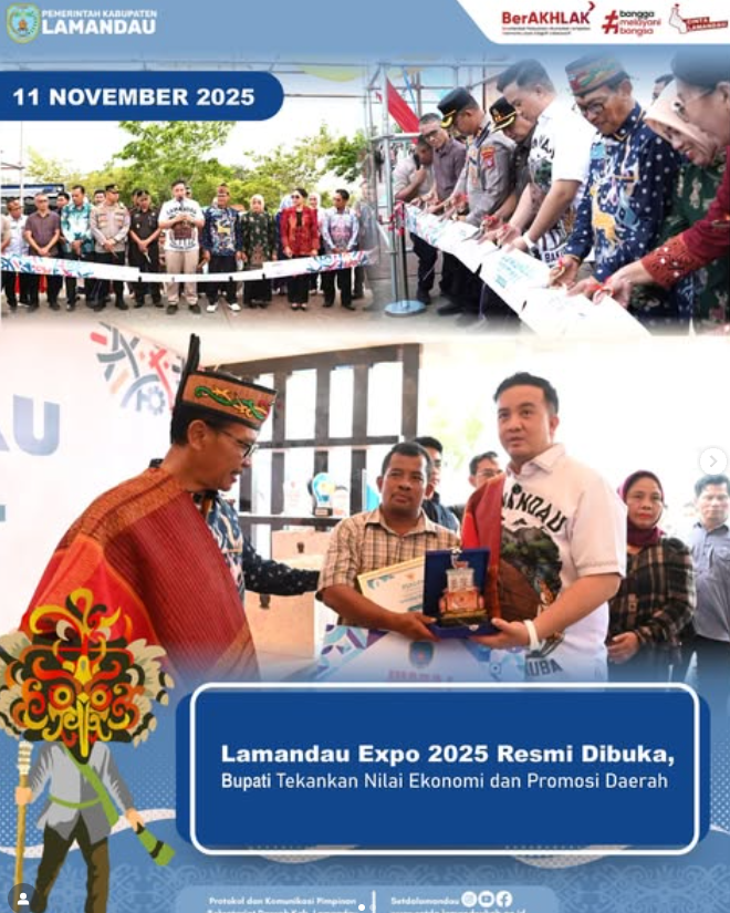 Nanga Bulik – Selasa (11/11), Bupati Lamandau Rizky Aditya Putra secara resmi membuka kegiatan Lamandau Expo 2025 yang berlangsung di Alun-Alun Nanga Bulik. Acara pembukaan turut dihadiri Wakil Bupati, Sekretaris Daerah, unsur Forkopimda, Asisten Lingkup Setda, kepala OPD, Anggota DPR, serta tamu undangan lainnya.