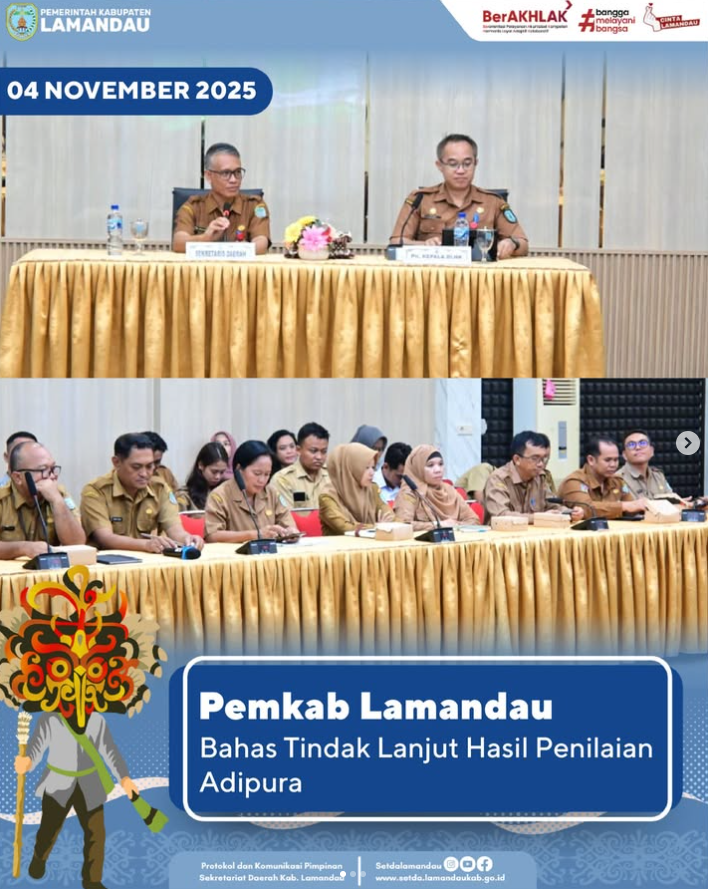 Nanga Bulik, Selasa (04/11) — Pemerintah Kabupaten Lamandau menggelar rapat pembahasan tindak lanjut hasil penilaian Adipura serta rencana perbaikan lapangan. Rapat ini dipimpin langsung oleh Sekretaris Daerah Kabupaten Lamandau, dihadiri oleh Asisten Pemerintah dan Kesejahteraan Rakyat, para kepala OPD, serta perwakilan sekolah.