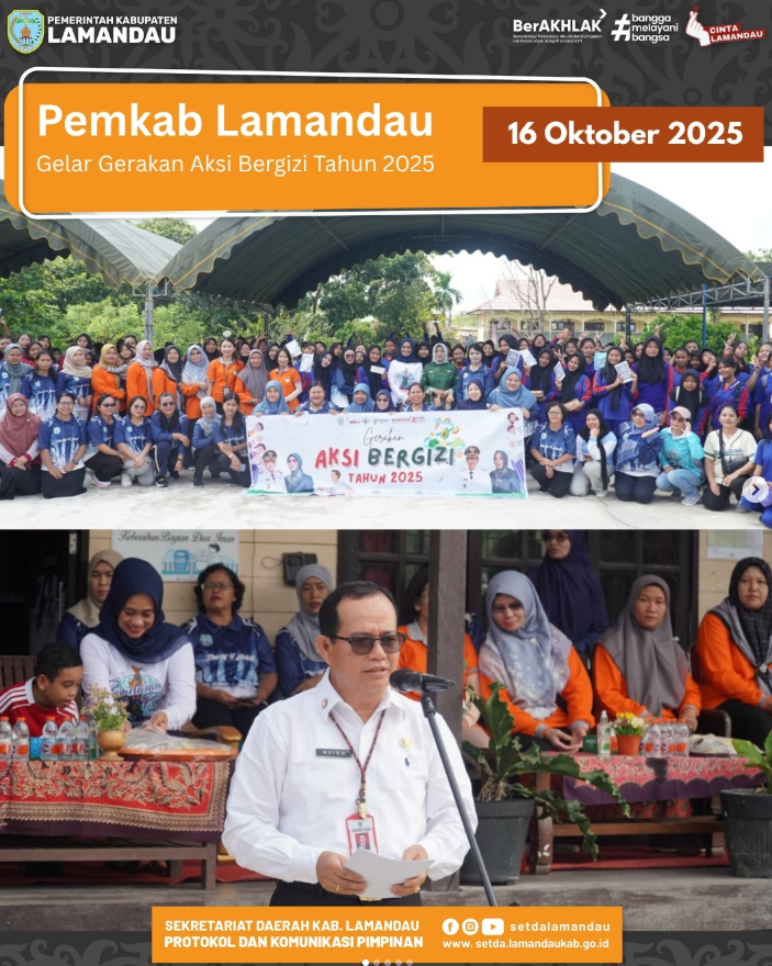 “Gerakan Aksi Bergizi bukan hanya seremonial, tetapi langkah nyata dalam membentuk generasi muda yang sehat, cerdas, produktif, dan berdaya saing demi masa depan Lamandau yang lebih maju,” ujar Asisten Administrasi Perekonomian, Pembangunan, dan SDA saat membacakan sambutan Bupati Lamandau.