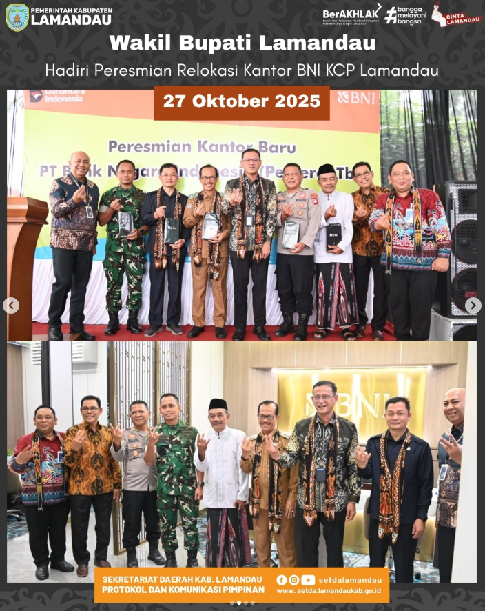 Wakil Bupati menegaskan bahwa Pemerintah Kabupaten Lamandau sangat mendukung keberadaan lembaga perbankan yang profesional dan berorientasi pada pelayanan publik. Ia menyebut, BNI telah menjadi mitra strategis pemerintah daerah dalam mendukung pembangunan ekonomi, pengelolaan keuangan daerah, serta pemberdayaan masyarakat di berbagai sektor.