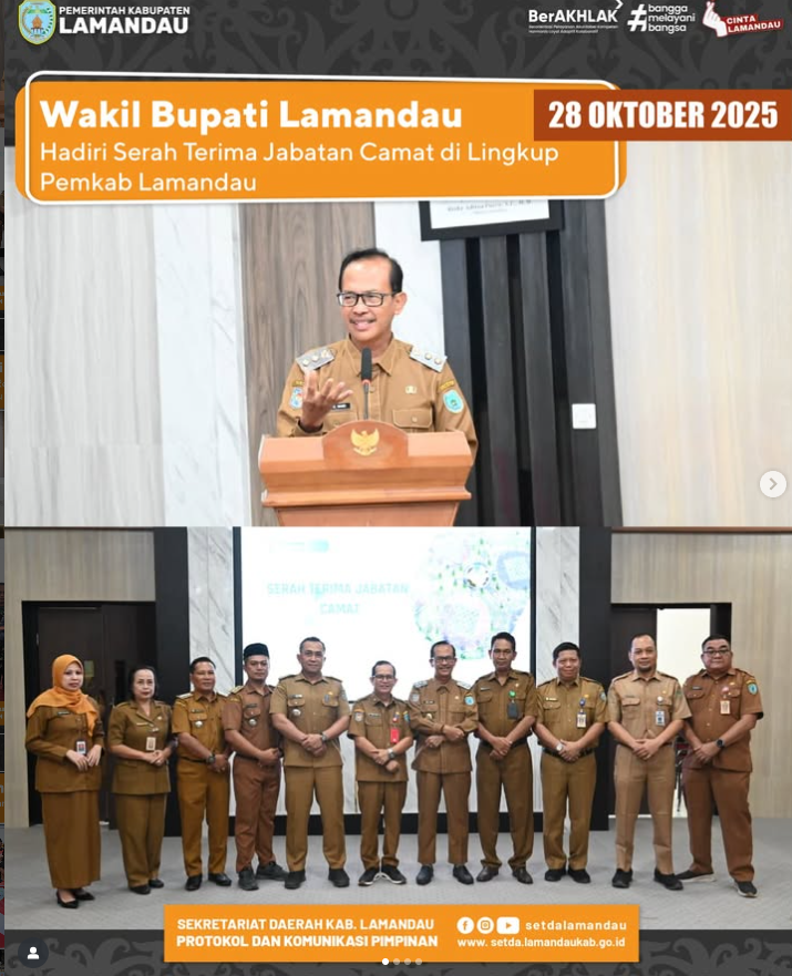 Dalam sambutan tertulis Bupati Lamandau yang dibacakan oleh Wakil Bupati, disampaikan bahwa serah terima jabatan merupakan bagian dari proses penyegaran organisasi dan regenerasi kepemimpinan dalam birokrasi pemerintahan. Beliau memberikan apresiasi dan ucapan terima kasih kepada para camat lama atas dedikasi dan pengabdian mereka selama menjabat, serta menyampaikan selamat kepada camat yang baru atas amanah yang diterima untuk melanjutkan pelayanan kepada masyarakat.